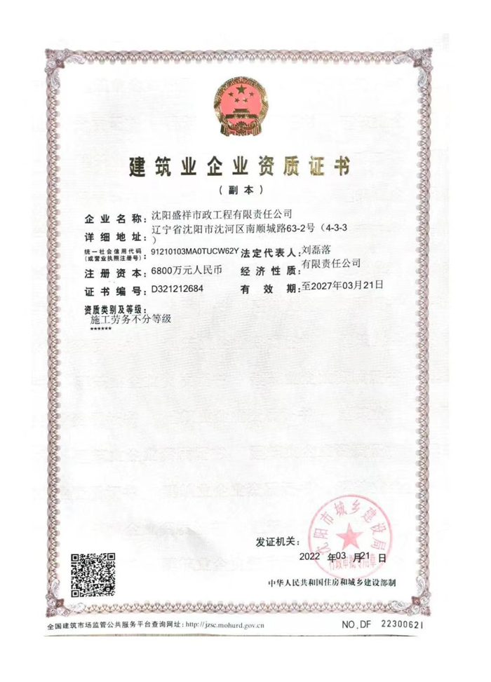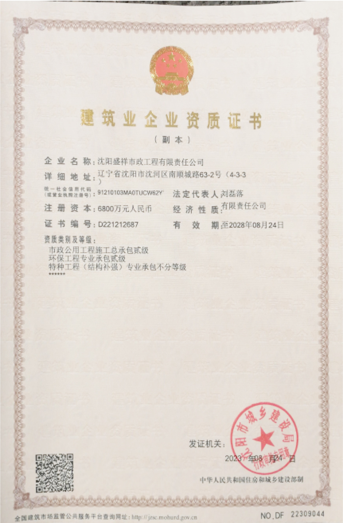 沈陽盛祥市政工程有限責(zé)任公司 地址:地址:沈陽市沈河區(qū)南順城路63-2號(4-3-3)
